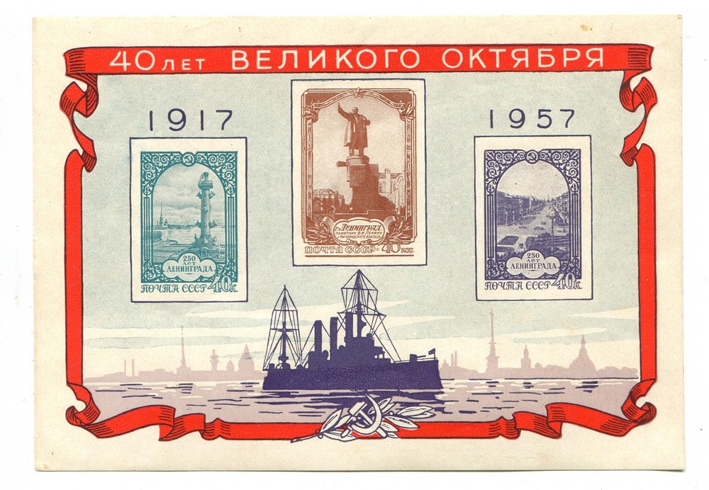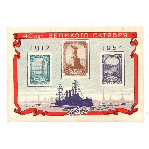 RUSIA 1957 Yv 23 HOJA BLOQUE NUEVA CON GOMA ALGO TONALIZADA 40 ANIVERSARIO DE LA REVOLUCION DE OCTUBRE 12.50 euros