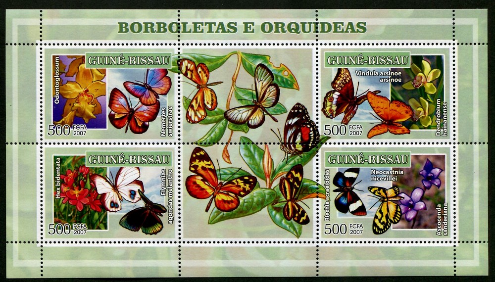 FLORES MARIPOSAS GUINEA BISSAU HOJA BLOQUE ESPECIAL NUEVA MINT