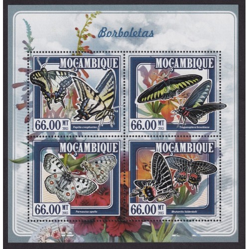 FLORES MARIPOSAS MOZAMBIQUE HOJA BLOQUE ESPECIAL de ESTAMPILLAS NUEVAS MINT