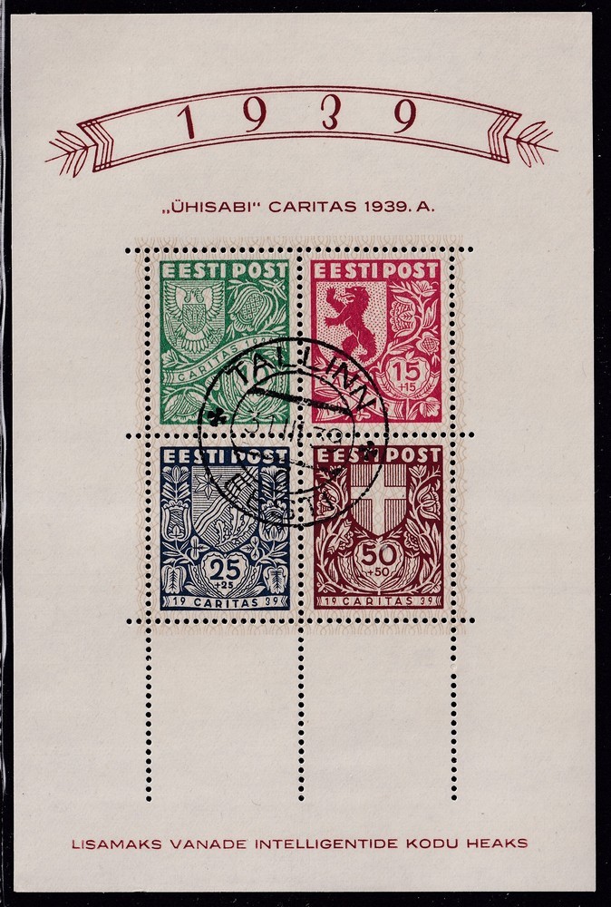 ESTONIA 1939 HOJA BLOQUE DE ESCUDOS RARA 110 €