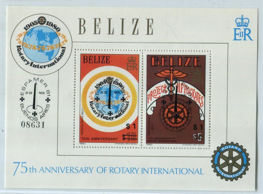 BELIZE HOJA BLOQUE DE ESTAMPILLAS NUEVAS MINT BELICE ROTARY