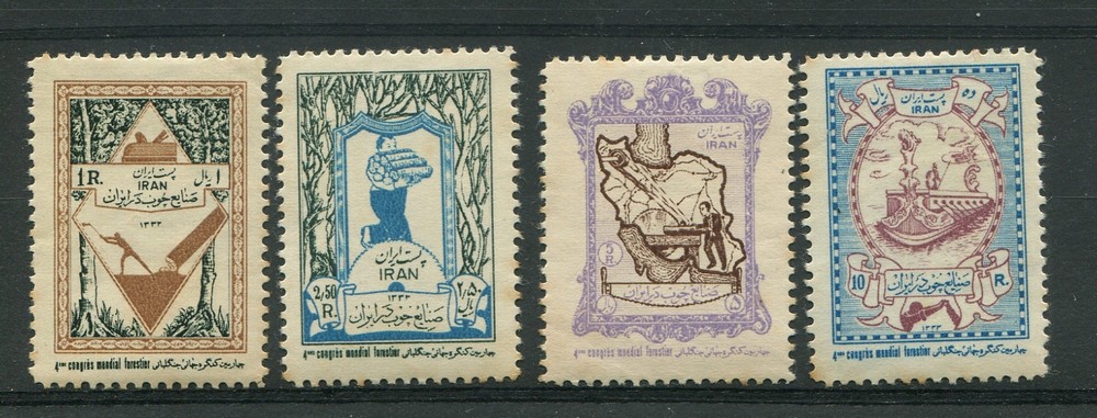 IRAN 1954 Yv 815/8 SERIE COMPLETA DE ESTAMPILLAS NUEVAS CON GOMA AMARRONADA COMO ES NORMAL EN ESTE PERIODO MUY RARISIMA 370 €