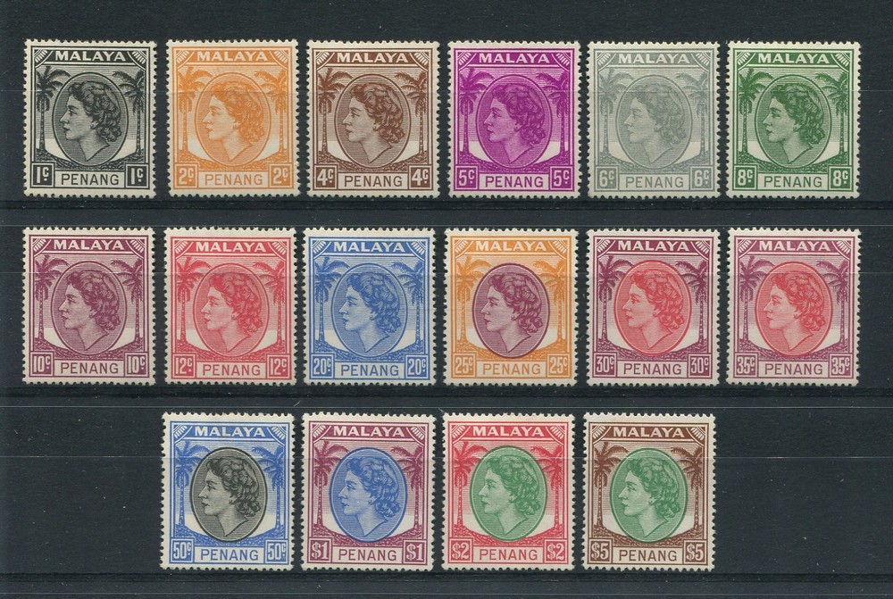 COLONIAS INGLESAS PENANG MALASIA Yv. 23/37 SERIE COMPLETA DE ESTAMPILLAS NUEVAS CON GOMA MUY RARA