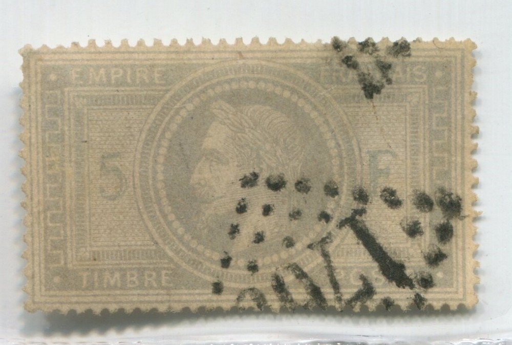 FRANCIA 1867 Yv. 33 EL 5 Francos NAPOLEON ESTUPENDO FRENTE EXPERTAMENTE REPARADO MAGNIFICO 1150 €