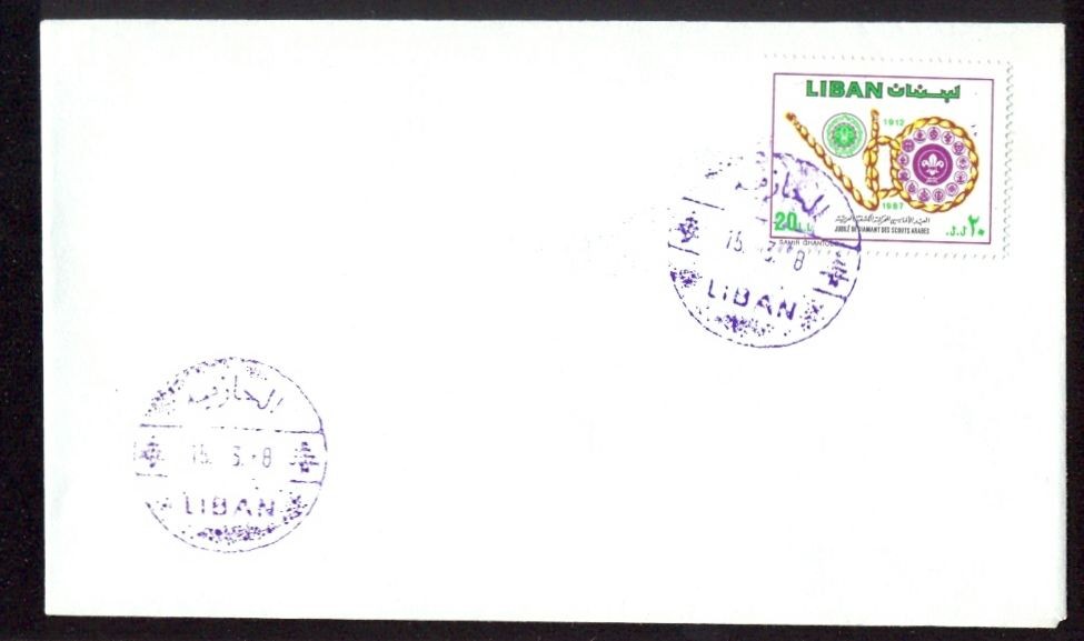BOY SCOUT LIBANO 1988 ESTAMPILLA SCOUTS EN SOBRE CON MATASELLO