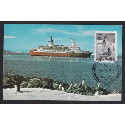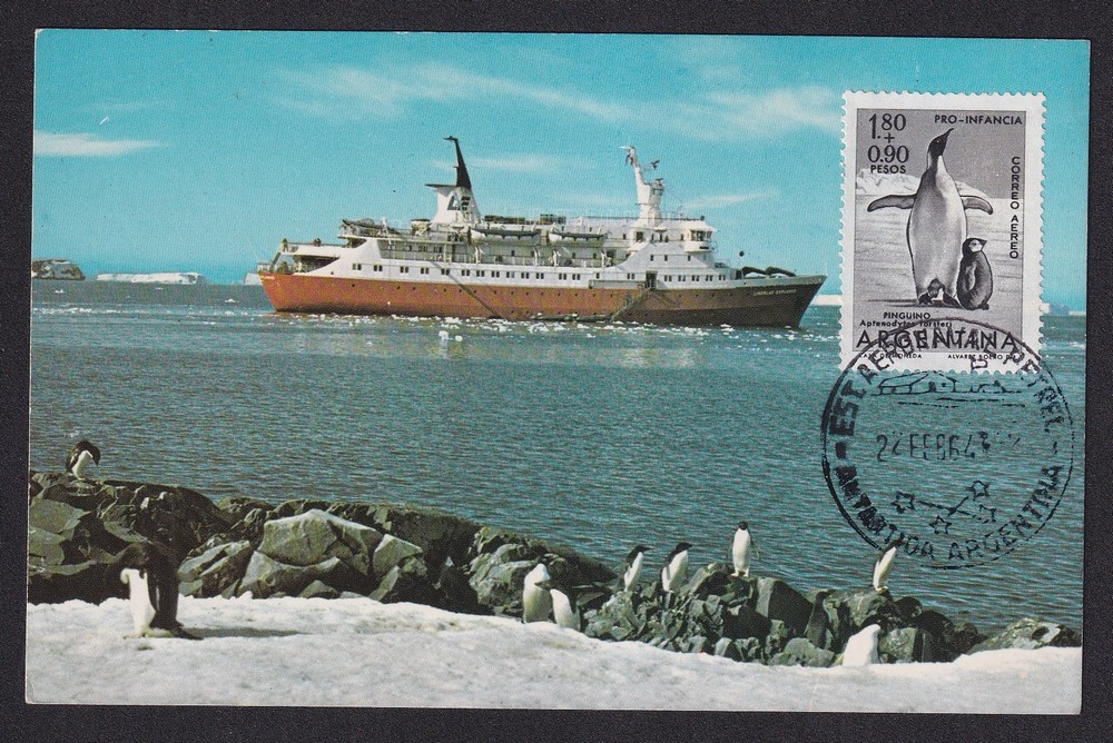 ANTARTIDA ARGENTINA 1964 TARJETA POSTAL DEL BARCO LINBLAND EXPLORER