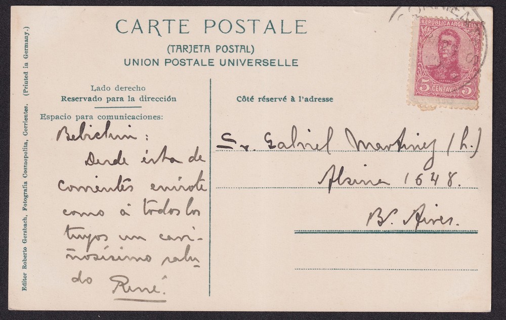 CORRIENTES ANTIGUA TARJETA POSTAL PENITENCIARIA